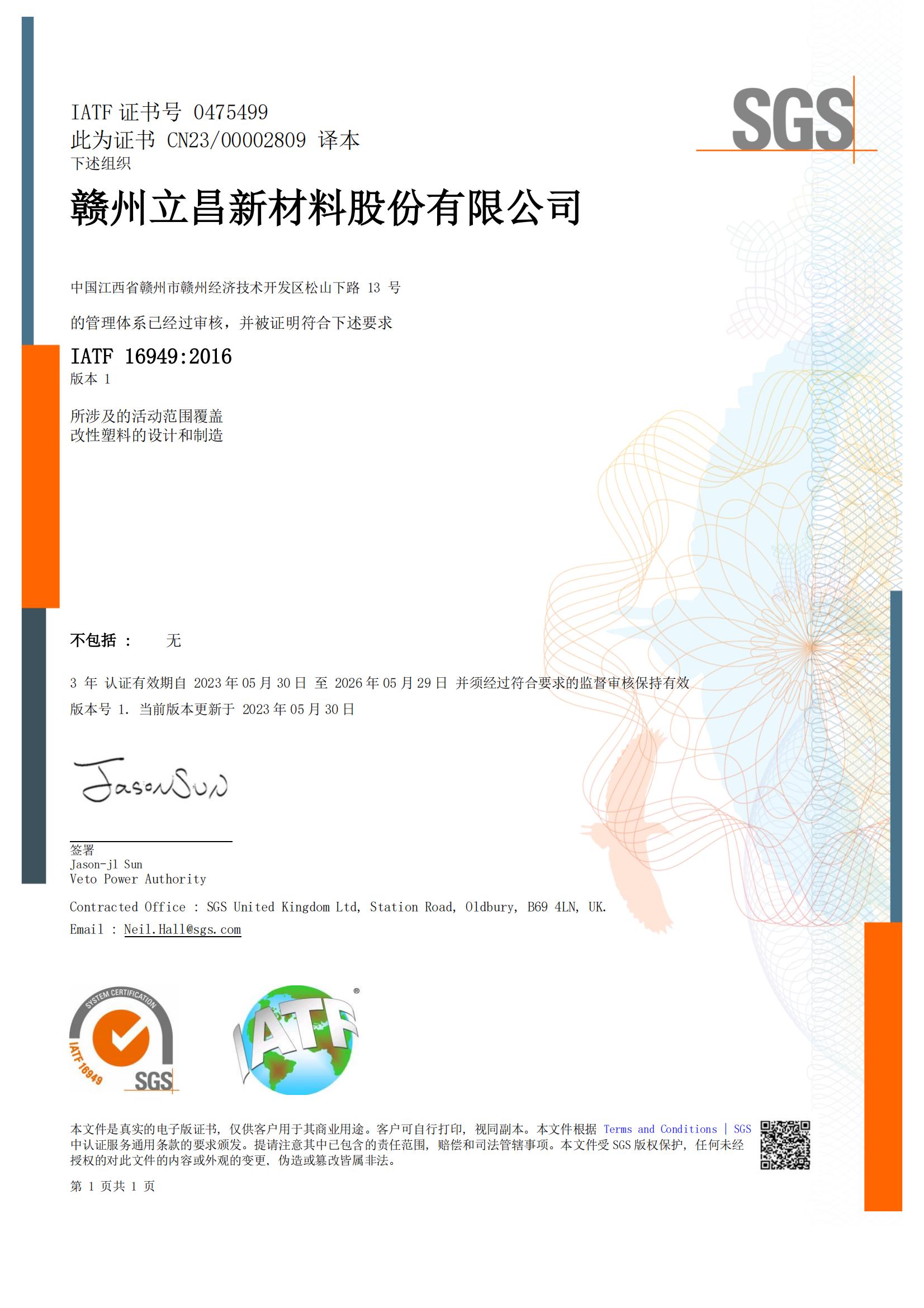 贛州立昌新材料股份有限公司 地址:江西省贛州市經(jīng)濟(jì)技術(shù)開發(fā)區(qū)松山下路13號